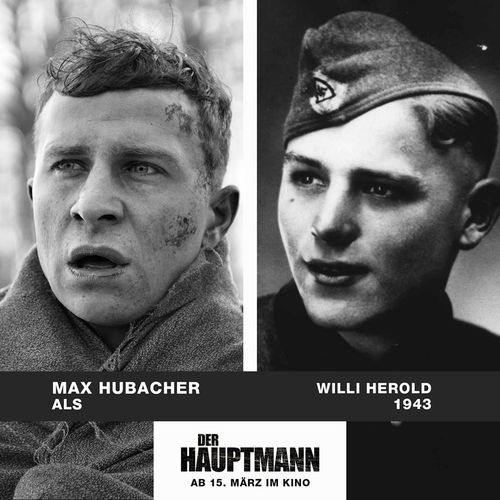 Saat berjalan sendiri, Wili Herold lantas menemukan sebuah mobil yang mogok namun didalamnya terdapat perlengkapan milik seorang perwira berpangkat Kapten dari satuan Luftwaffe (AU Nazi Jerman). Herold mengambil seragam Der Hauptmann dan mengenakannya meski celana yang dipakai terlalu panjang. Herold berakting seolah-olah ia adalah perwira sungguhan. Aksi pertamanya ditunjukan kepada Freytag (diperankan oleh Milan Peschel), seorang prajurit yang terpisah dari unitnya setelah pertempuran sengit melawa sekutu. Ia bersandiwara kepada Freytag dengan mengintrograsi serta menuduhnya sudah lalai dalam tugas. Namun Herold memaafkan dan menjadikan Freytag sebagai supir pribadi.